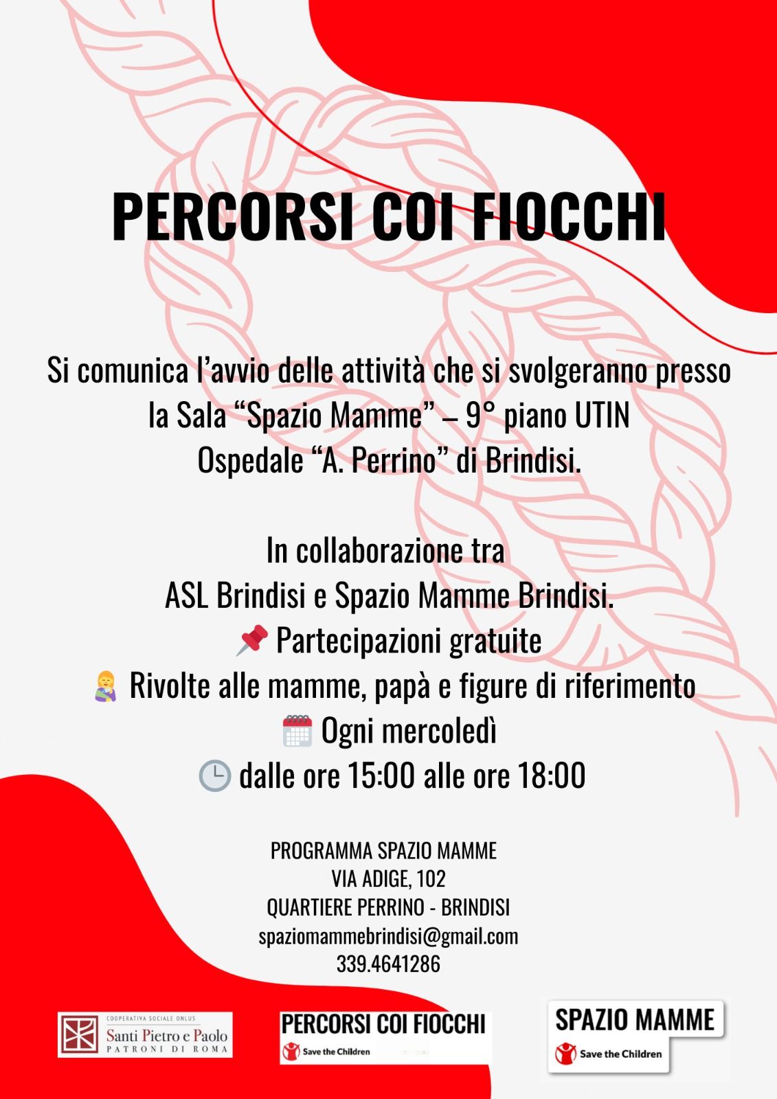 A Brindisi prendono il via le attività di “Percorsi coi Fiocchi” presso l’Ospedale “A. Perrino”, un’iniziativa a supporto di genitori e neogenitori, adulti di riferimento, bambine e bambini nei primi anni di vita. Il progetto rafforza la collaborazione tra ospedale e territorio grazie al lavoro congiunto di ASL Brindisi, Spazio Mamme Brindisi e Save the Children Italia.